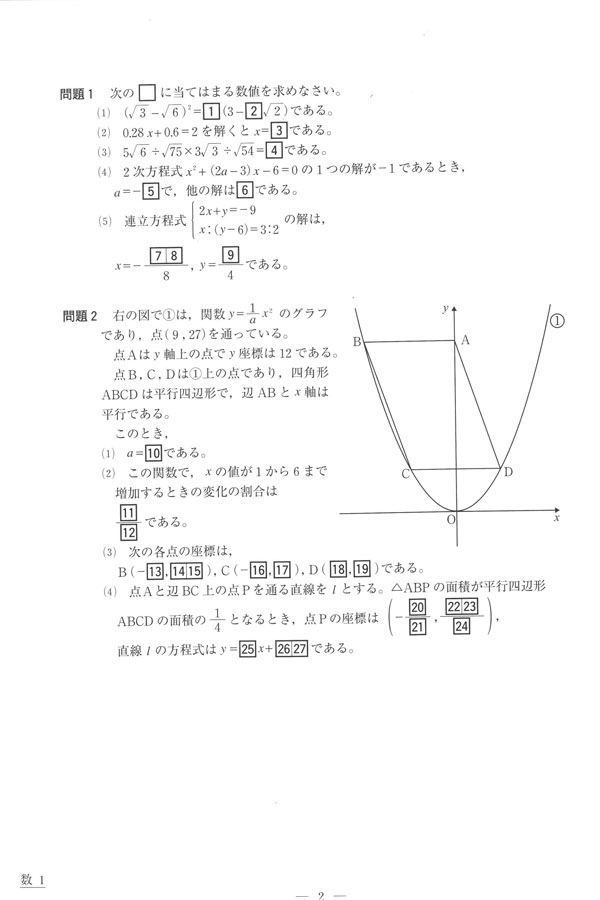 平成21年度入試過去問題(数学 問題)(1ページ目)|札幌第一高等学校の入試過去問