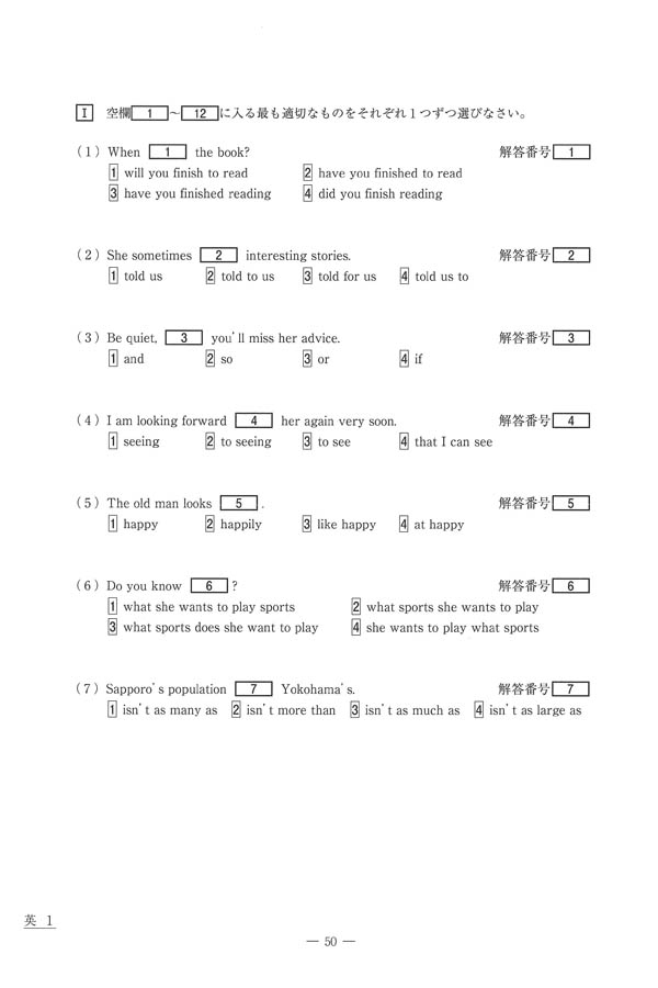 令和6年度入試過去問題(英語 問題)(1ページ目)|札幌第一高等学校の入試過去問