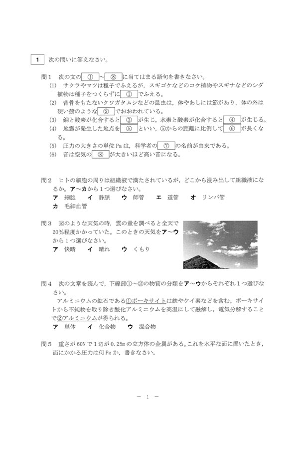 2021年度入試過去問題 (理科 問題)(1ページ目)|札幌山の手高等学校の入試過去問
