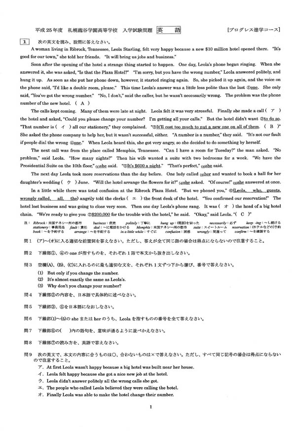 入試過去問(問題)(1ページ目)|札幌龍谷学園高等学校の入試過去問