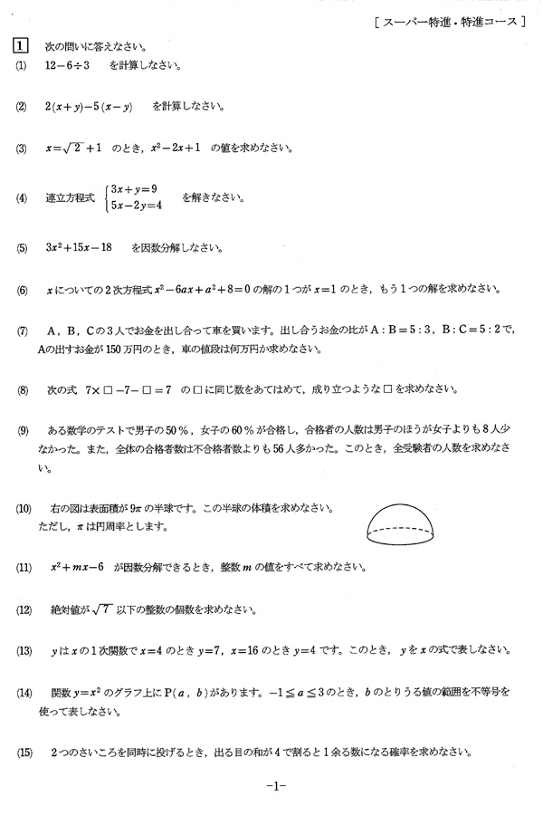 平成27年度入試過去問題 スーパー特進・特進コース[1/2]
