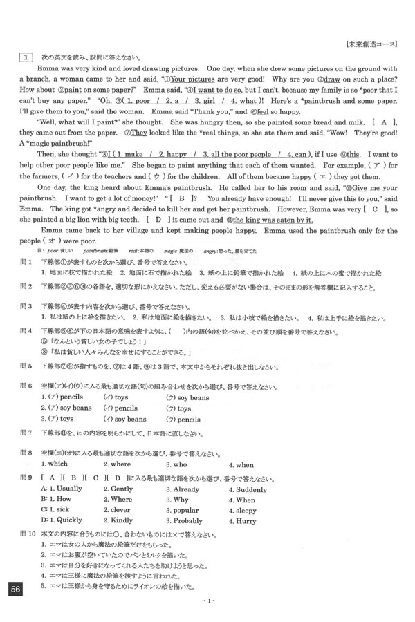 平成31年度入試過去問題 未来創造コース(英語 問題)(1ページ目)|札幌龍谷学園高等学校の入試過去問