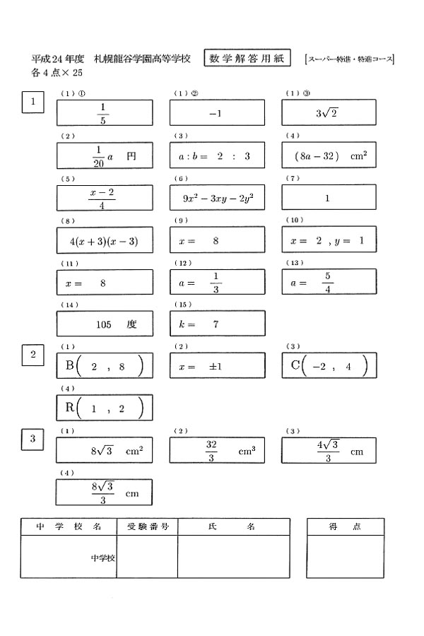 平成24年度入試過去問題 (スーパー特進・特進コース)[1/1]