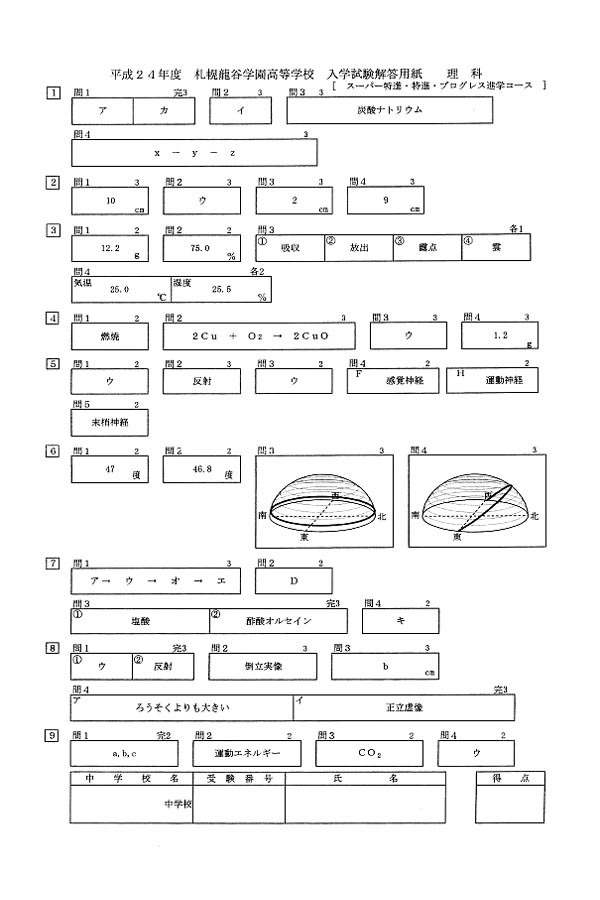 入試過去問(解答)(1ページ目)|札幌龍谷学園高等学校の入試過去問