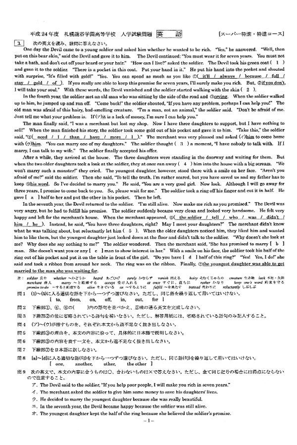 平成24年度入試過去問題 (スーパー特進・特進コース)[1/2]