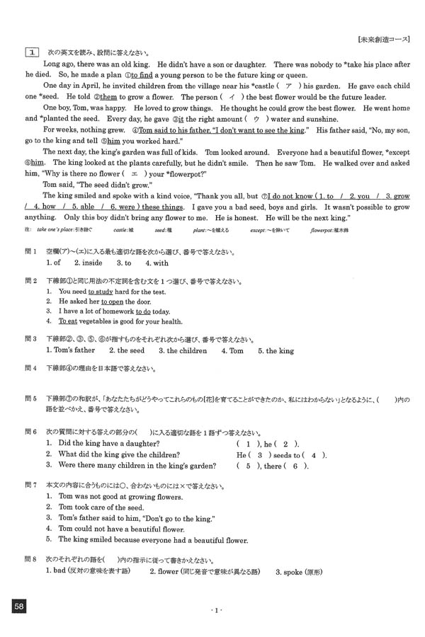 2023年度入試過去問題 未来創造コース(英語 問題)(1ページ目)|札幌龍谷学園高等学校の入試過去問
