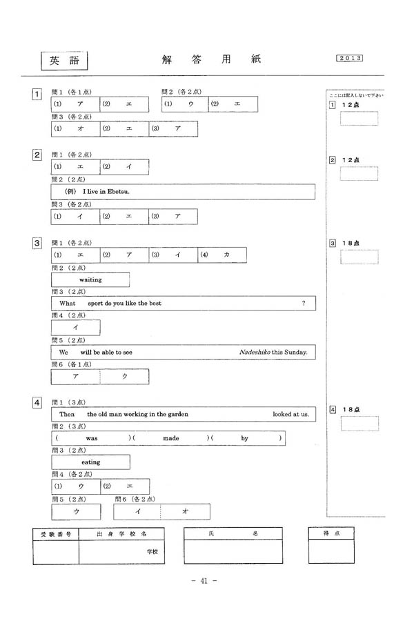 入試過去問(解答)(1ページ目)|酪農学園大学附属とわの森三愛高等学校の入試過去問