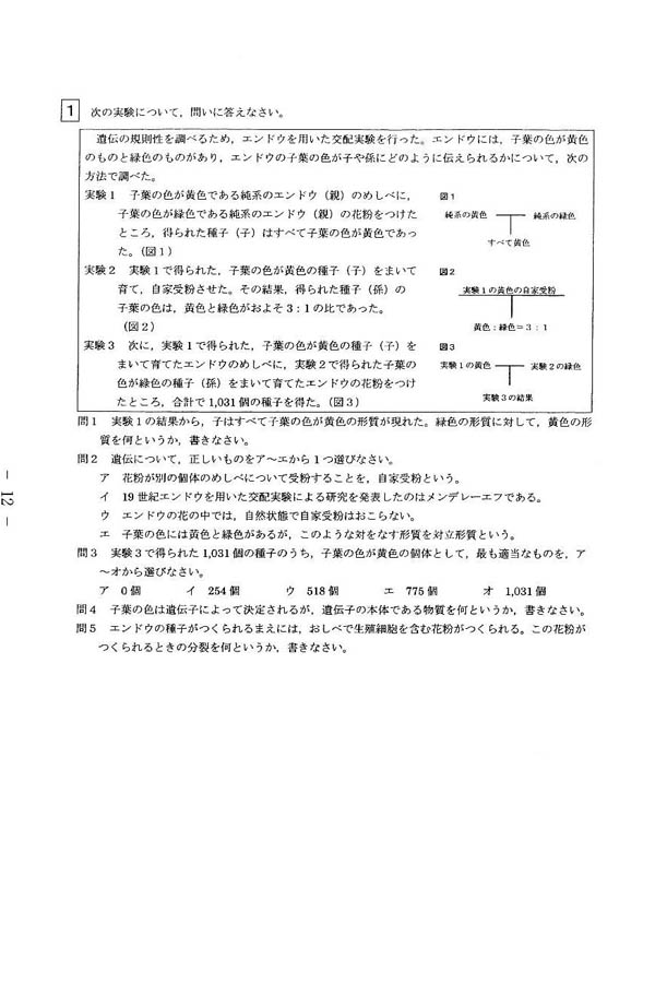 平成25年度入試過去問題(理科 問題)(1ページ目)|酪農学園大学附属とわの森三愛高等学校の入試過去問