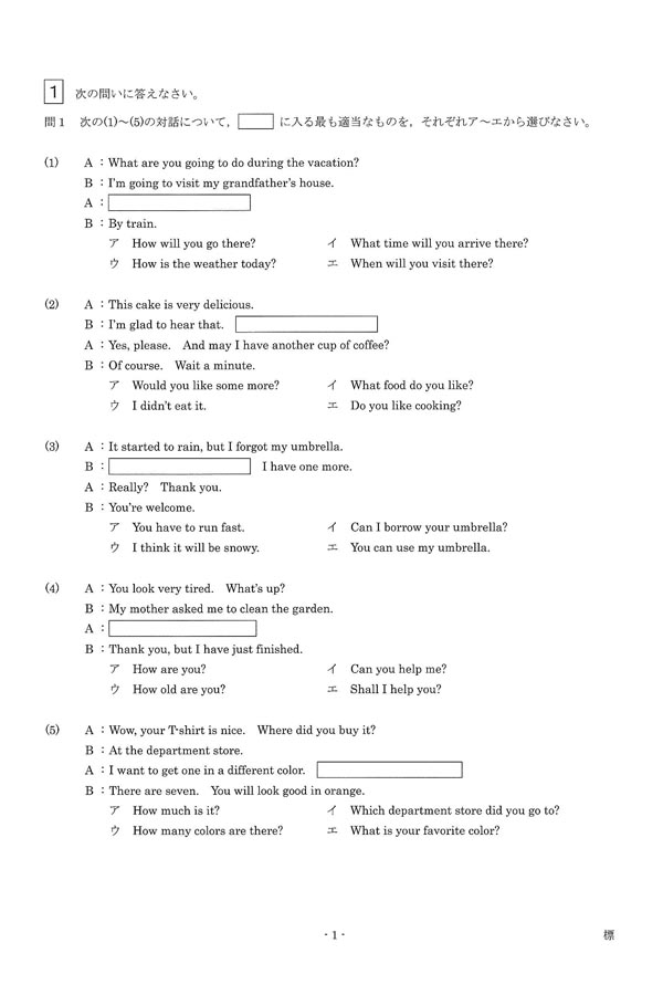 2020年度入試過去問題(英語 問題)(1ページ目)|酪農学園大学附属とわの森三愛高等学校の入試過去問