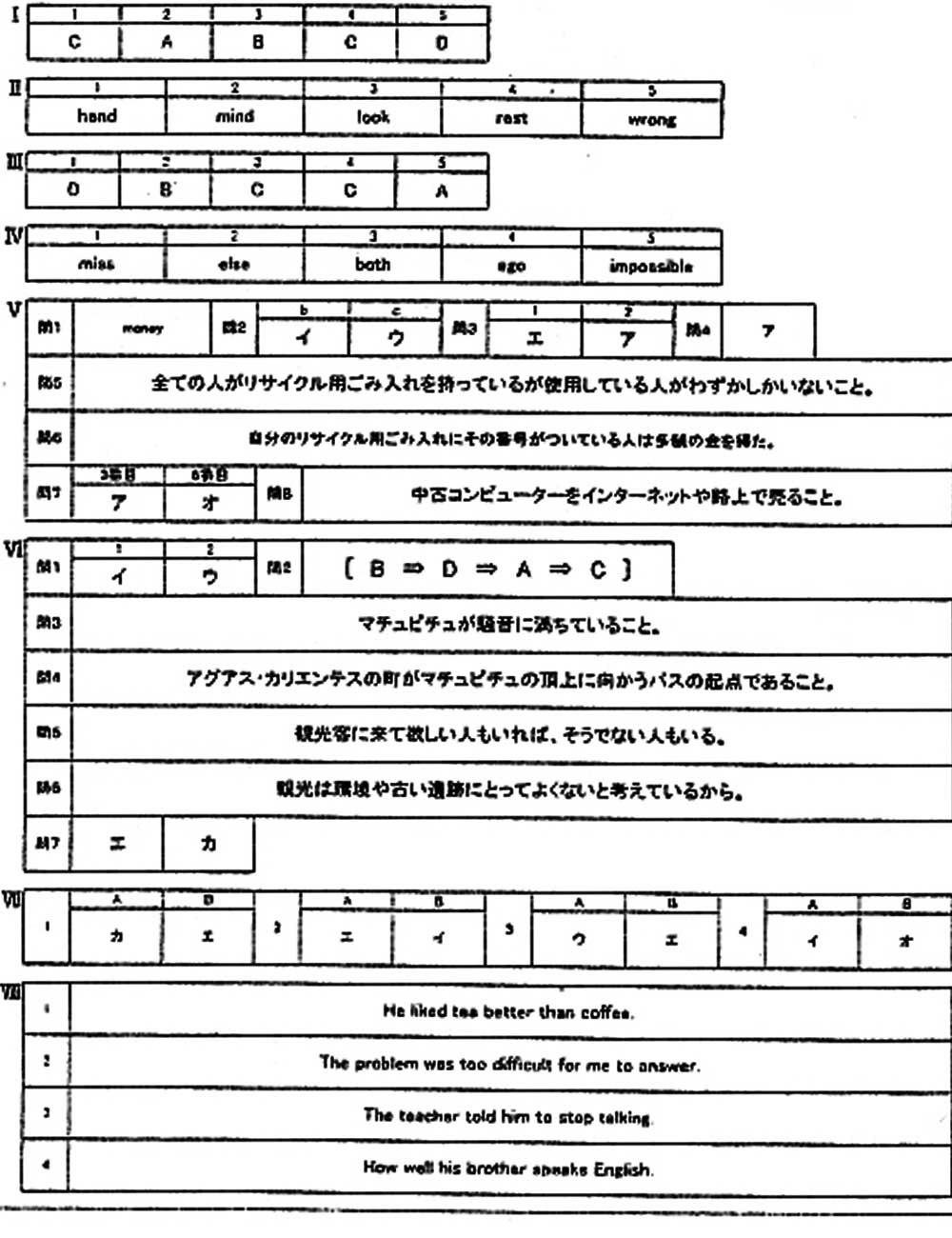 平成23年度入試過去問題 推薦(英語 解答)(1ページ目)|函館ラ・サール高等学校の入試過去問