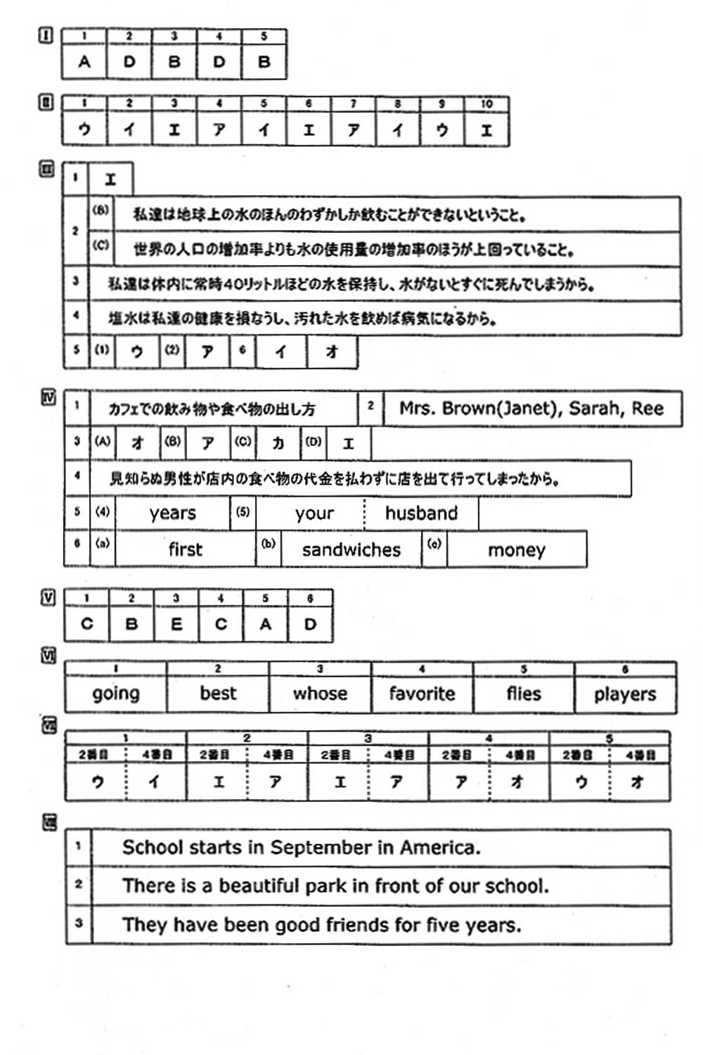 平成23年度入試過去問題 一般(英語 解答)(1ページ目)|函館ラ・サール高等学校の入試過去問