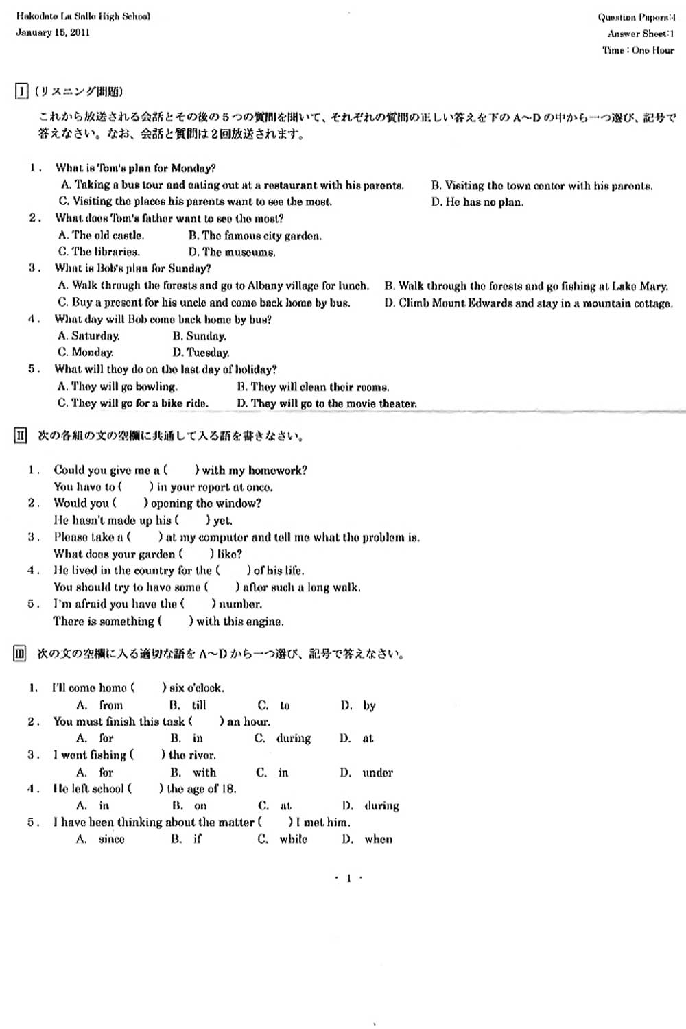 入試過去問(問題)(1ページ目)|函館ラ・サール高等学校の入試過去問