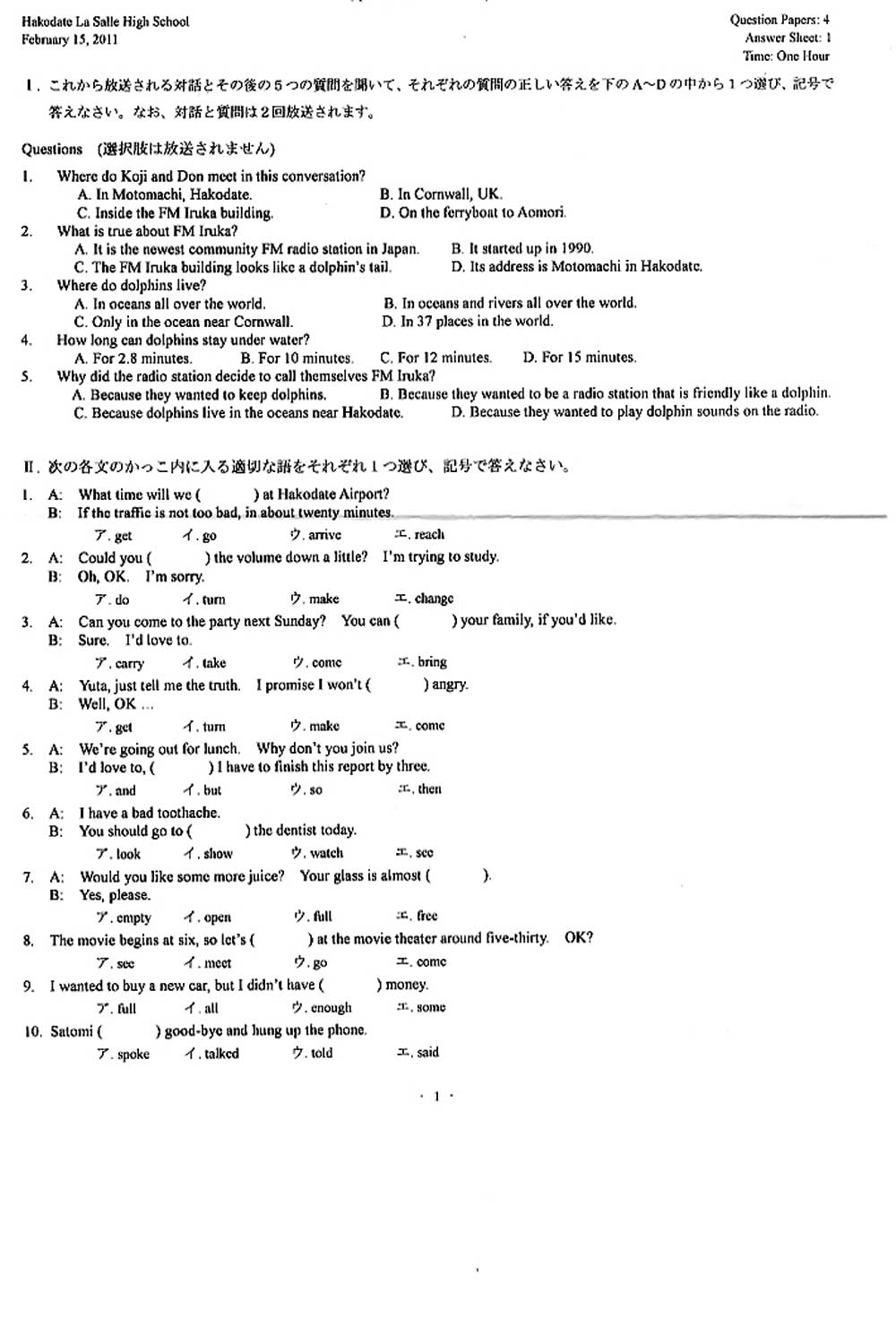 入試過去問(問題)(1ページ目)|函館ラ・サール高等学校の入試過去問