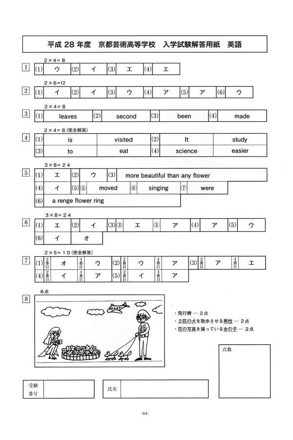 京都芸術高等学校の平成28年度入試過去問題-英語解答