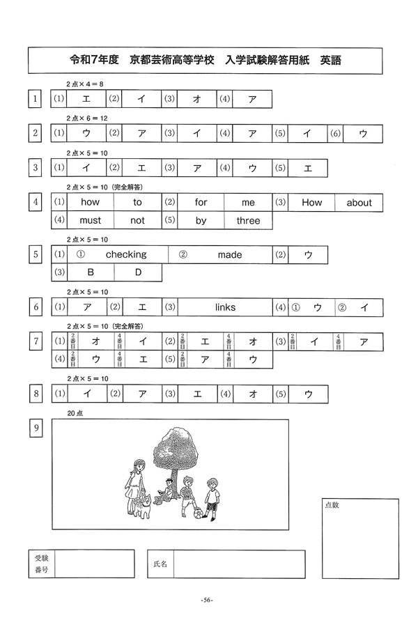 2025年度入試過去問題(専願A・併願A)(英語 解答)(1ページ目)|京都芸術高等学校の入試過去問