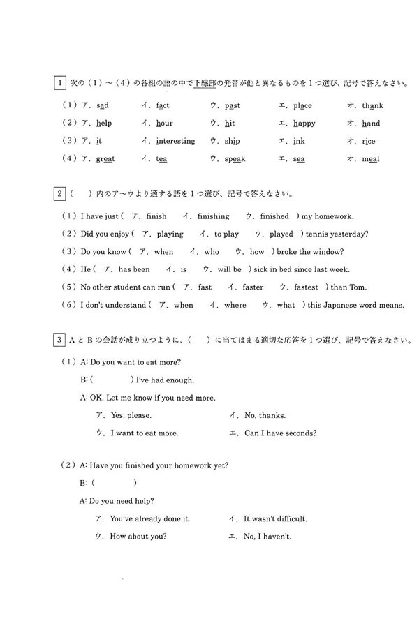 2025年度入試過去問題(専願A・併願A)[1/6]