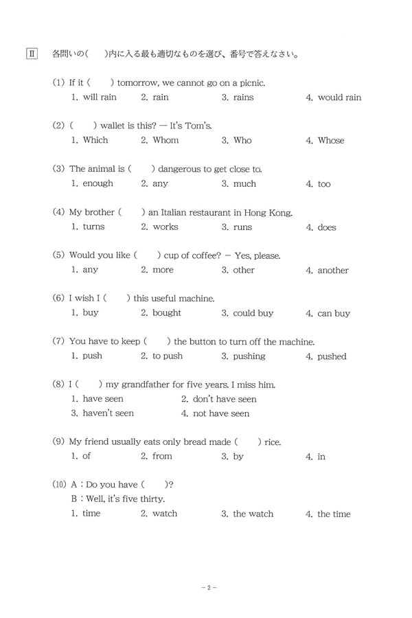 2024年度入試過去問題(英語 問題)(3ページ目)|大阪国際高等学校の入試過去問