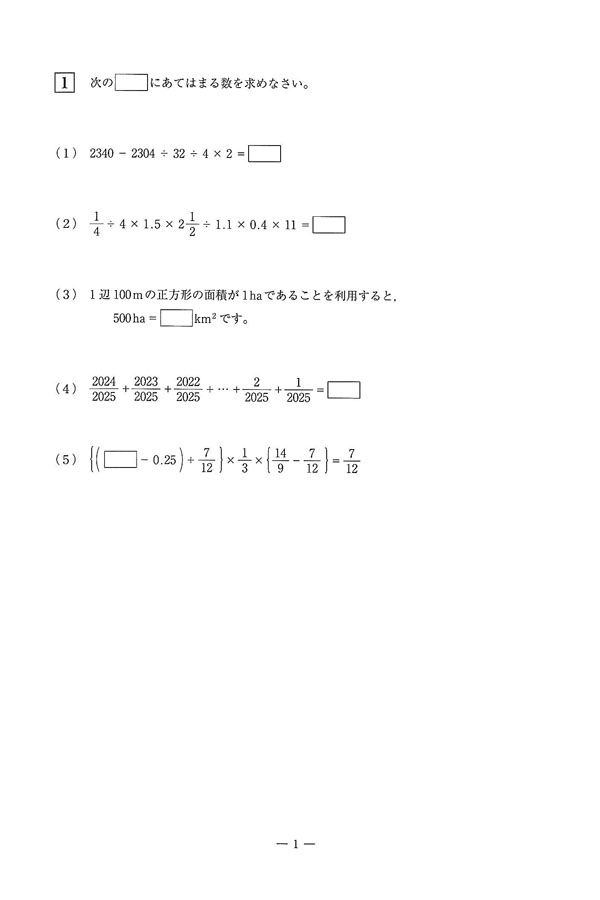 2025年度入試過去問題  2月1日午前(2科・4科)(算数 問題)(1ページ目)|かえつ有明中学校の入試過去問