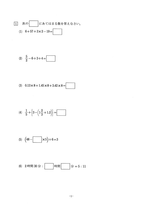 令和7年度入試過去問題 第1回(算数 問題)(1ページ目)|和洋九段女子中学校の入試過去問