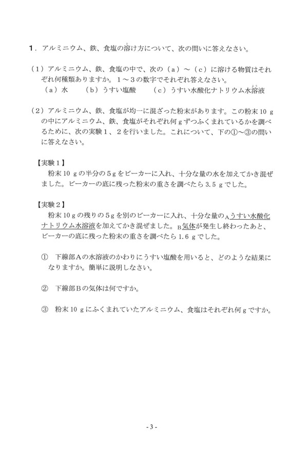 2025年度入試過去問題  第2回(理科 問題)(1ページ目)|三輪田学園中学校の入試過去問