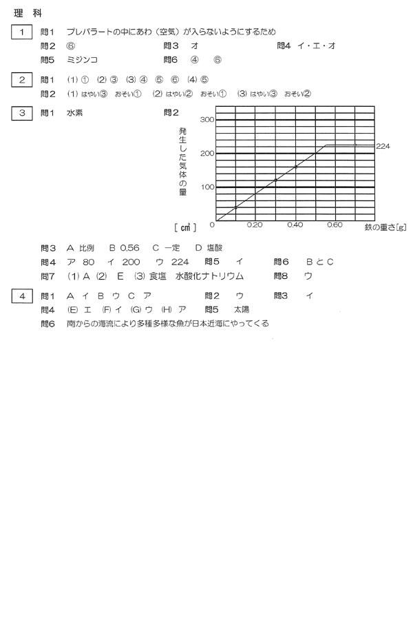 平成24年度入試過去問題 A日程(理科 解答)(1ページ目)|山脇学園中学校の入試過去問
