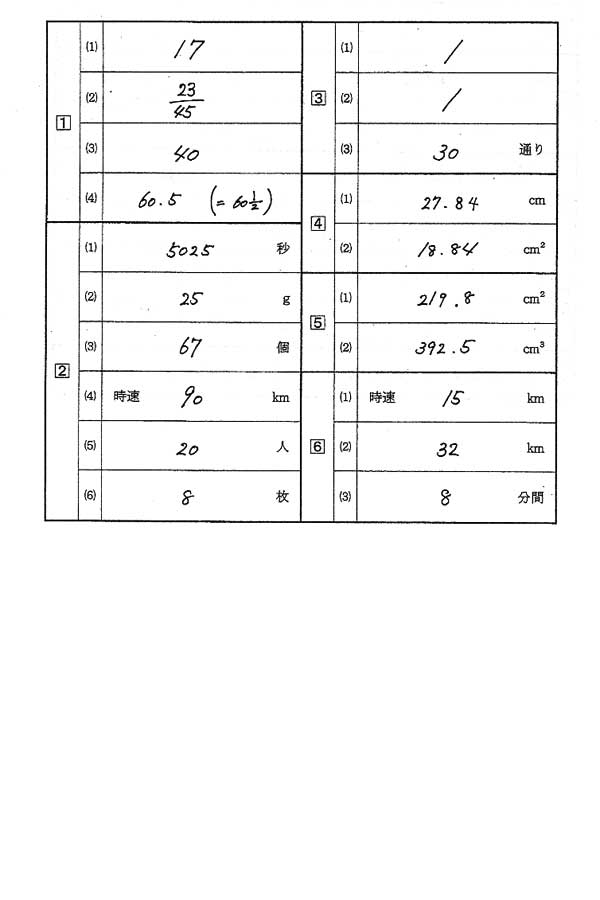 入試過去問(解答)(1ページ目)|駒込中学校の入試過去問
