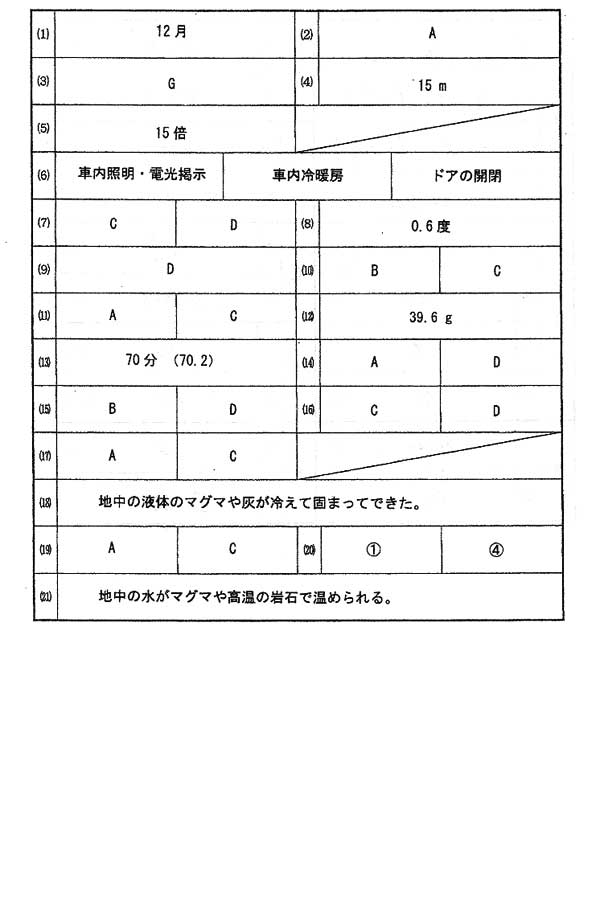 平成23年度入試過去問題 第2回(理科 解答)(1ページ目)|駒込中学校の入試過去問