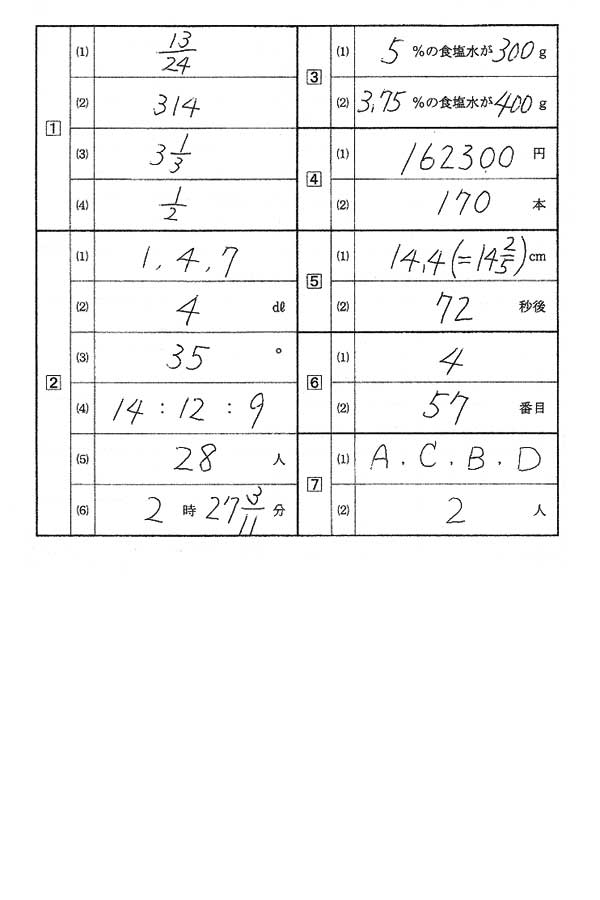 平成23年度入試過去問題 第4回(算数 解答)(1ページ目)|駒込中学校の入試過去問