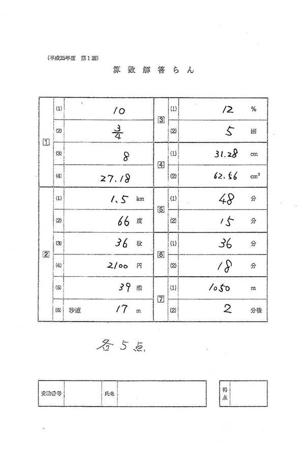 平成25年度入試過去問題(算数 解答)(1ページ目)|駒込中学校の入試過去問