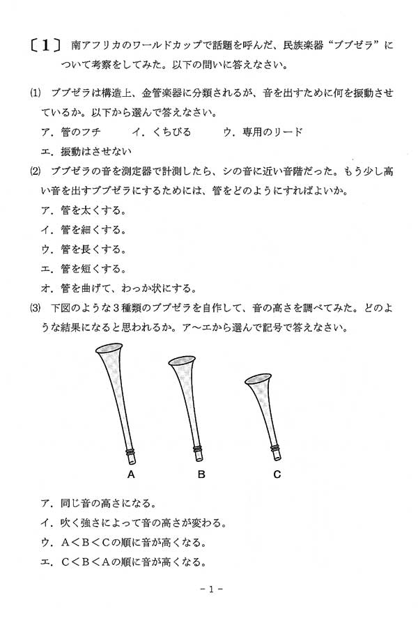 平成23年度入試過去問題 第1回(理科 問題)(1ページ目)|駒込中学校の入試過去問