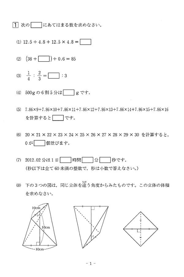 平成24年度入試過去問題 第3回[1/6]
