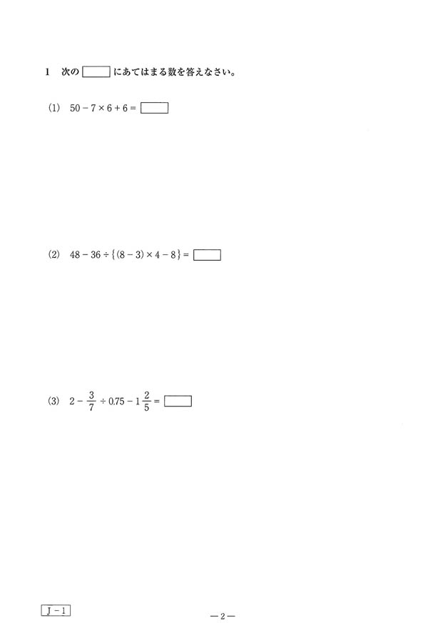 2024年度入試過去問題  J-1(算数 問題)(1ページ目)|多摩大学目黒中学校の入試過去問