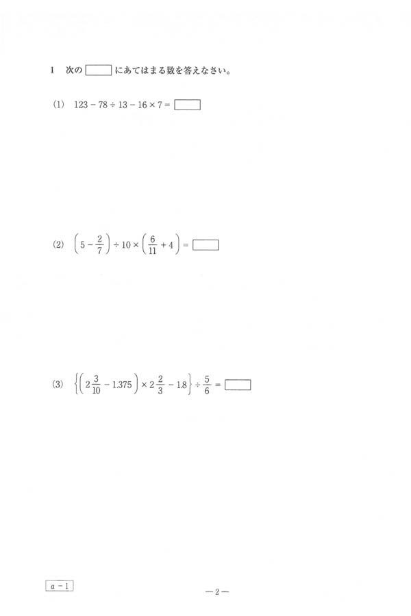 2024年度入試過去問題  a-1(算数 問題)(1ページ目)|多摩大学目黒中学校の入試過去問