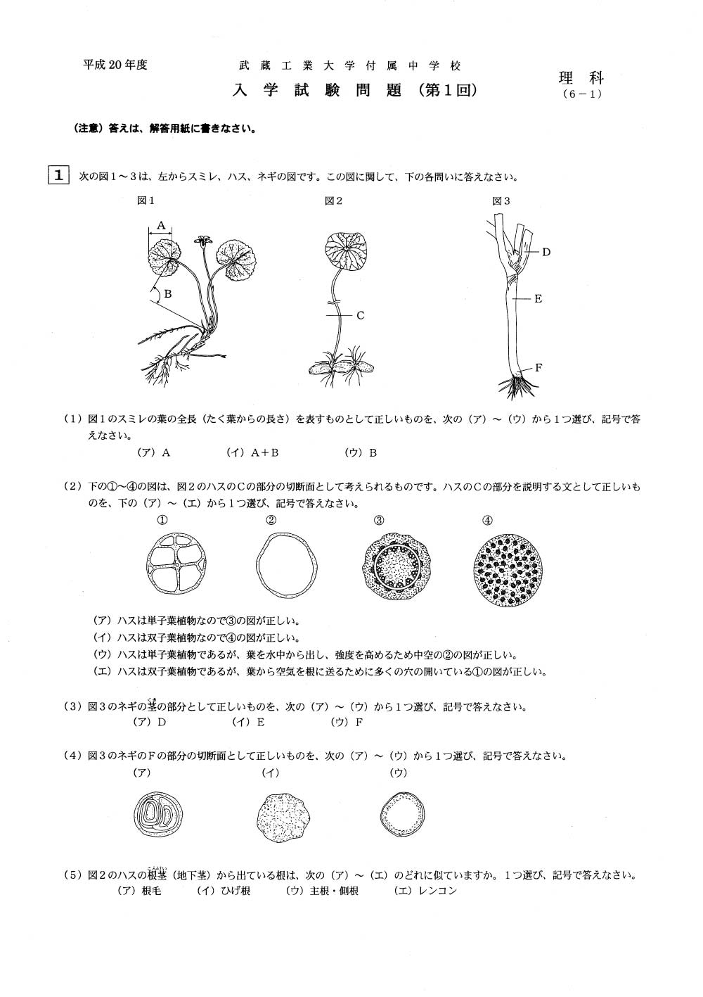 平成20年度入試過去問題 第1回(理科 問題)(1ページ目)|東京都市大学付属中学校の入試過去問