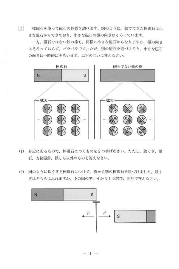 2025年度入試過去問題 第1回(理科 問題)(1ページ目)|玉川聖学院中等部の入試過去問