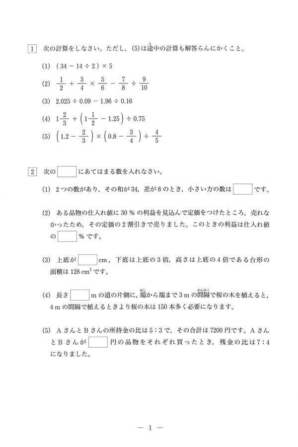 2025年度入試過去問題 第2回[1/4]
