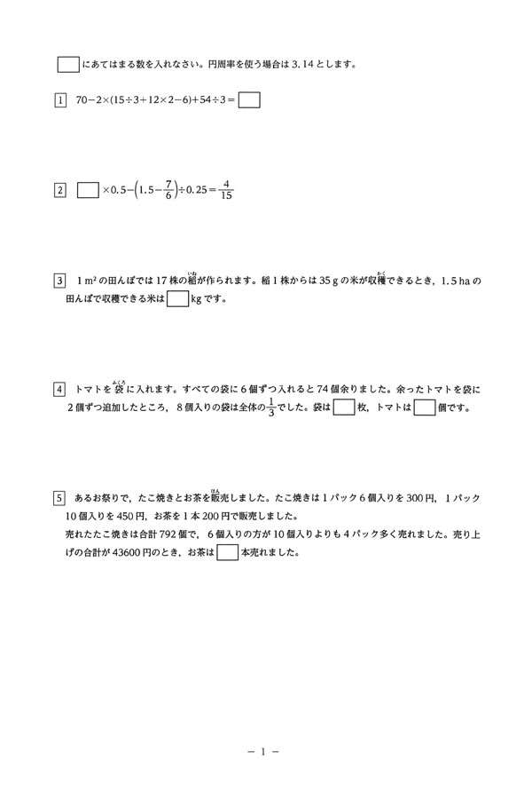 2025年度入試過去問題(算数 問題)(1ページ目)|青山学院中等部の入試過去問