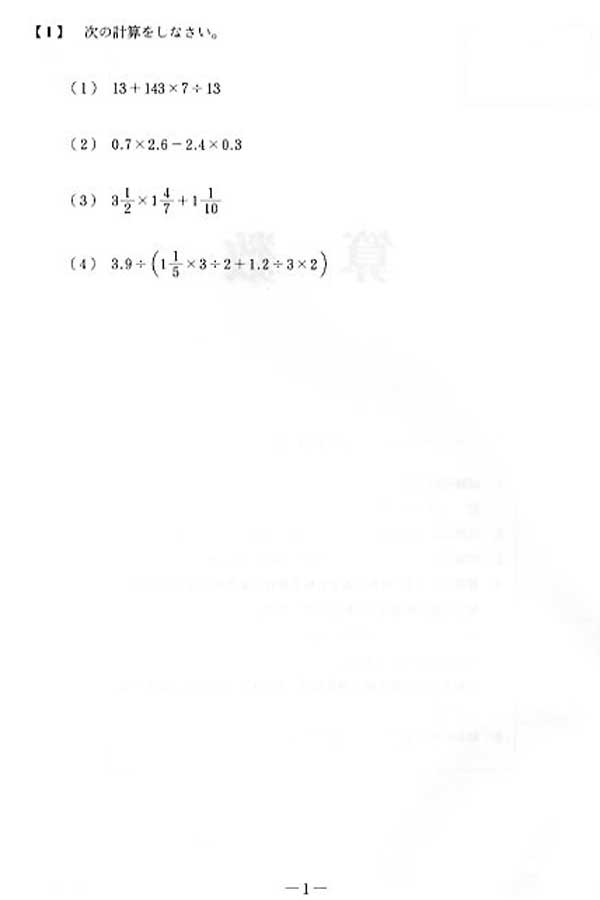 入試過去問(問題)(1ページ目)|国学院大学久我山中学校の入試過去問