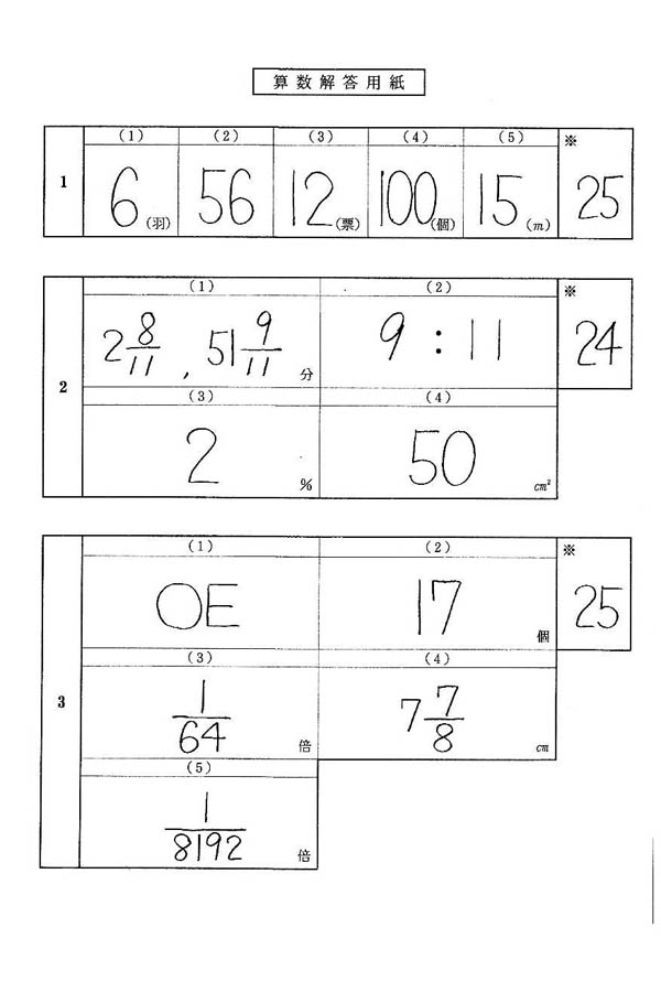 平成25年度入試過去問題 ST第1回(算数 解答)(1ページ目)|国学院大学久我山中学校の入試過去問