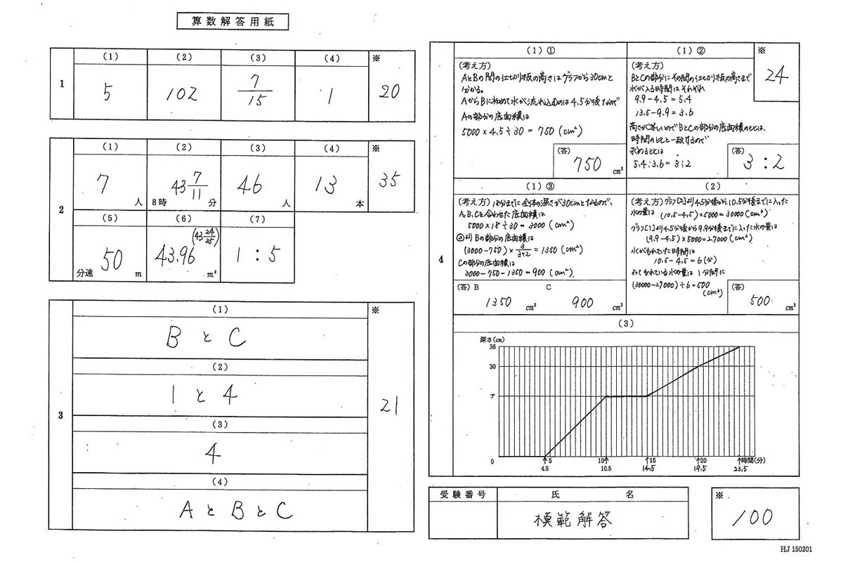 平成27年度入試過去問題 第1回(算数 解答)(1ページ目)|国学院大学久我山中学校の入試過去問