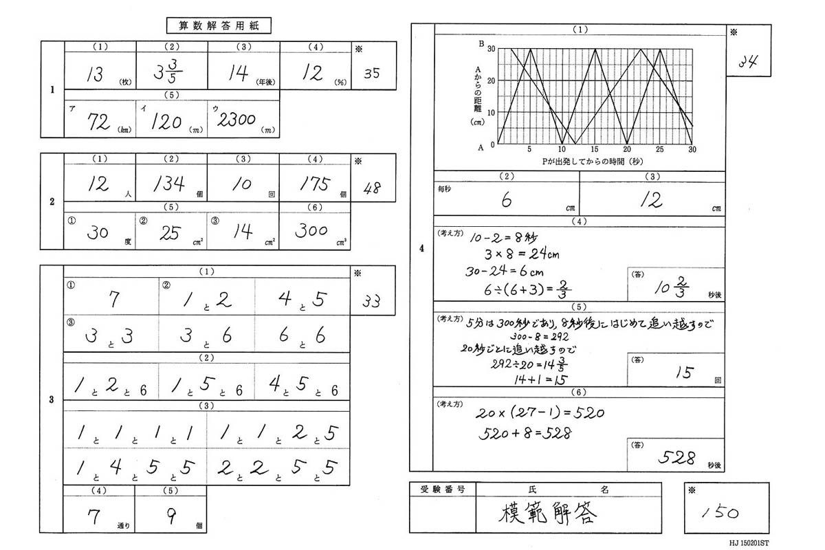平成27年度入試過去問題 ST第1回(算数 解答)(1ページ目)|国学院大学久我山中学校の入試過去問