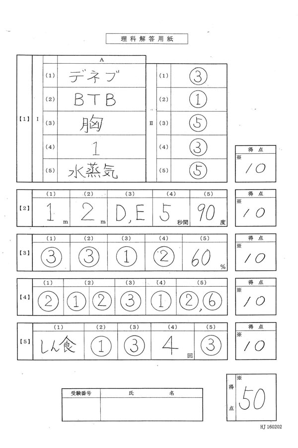 平成28年度入試過去問題 第2回(理科 解答)(1ページ目)|国学院大学久我山中学校の入試過去問