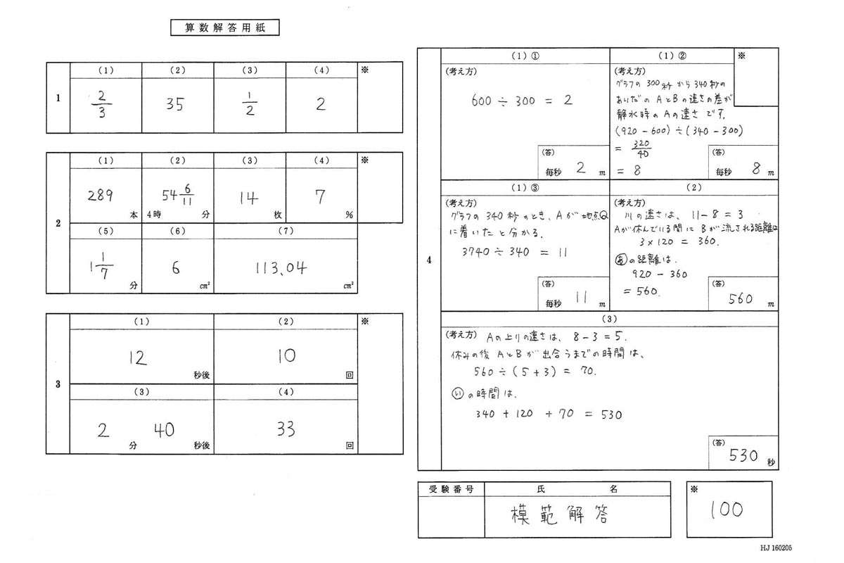 平成28年度入試過去問題 第3回(算数 解答)(1ページ目)|国学院大学久我山中学校の入試過去問
