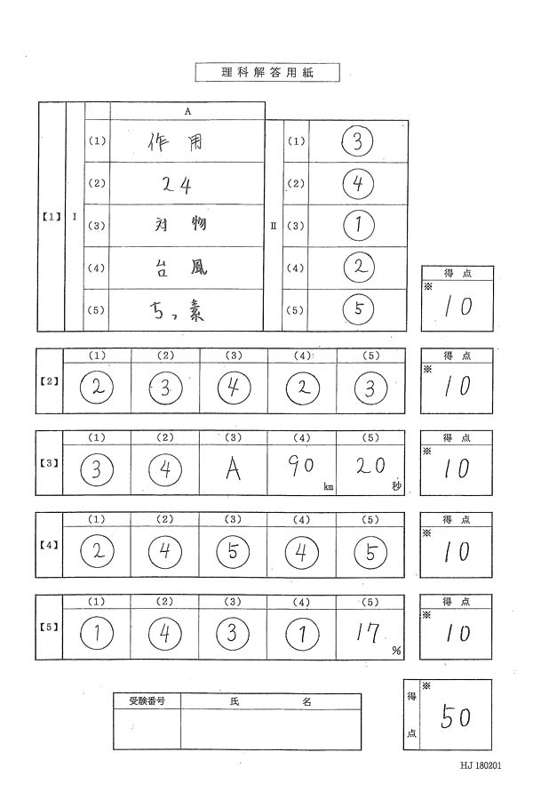 平成30年度入試過去問題 第1回(理科 解答)(1ページ目)|国学院大学久我山中学校の入試過去問
