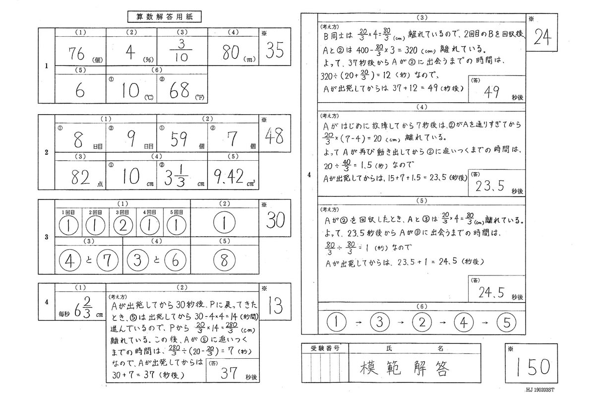 平成31年度入試過去問題 ST第2回(算数 解答)(1ページ目)|国学院大学久我山中学校の入試過去問