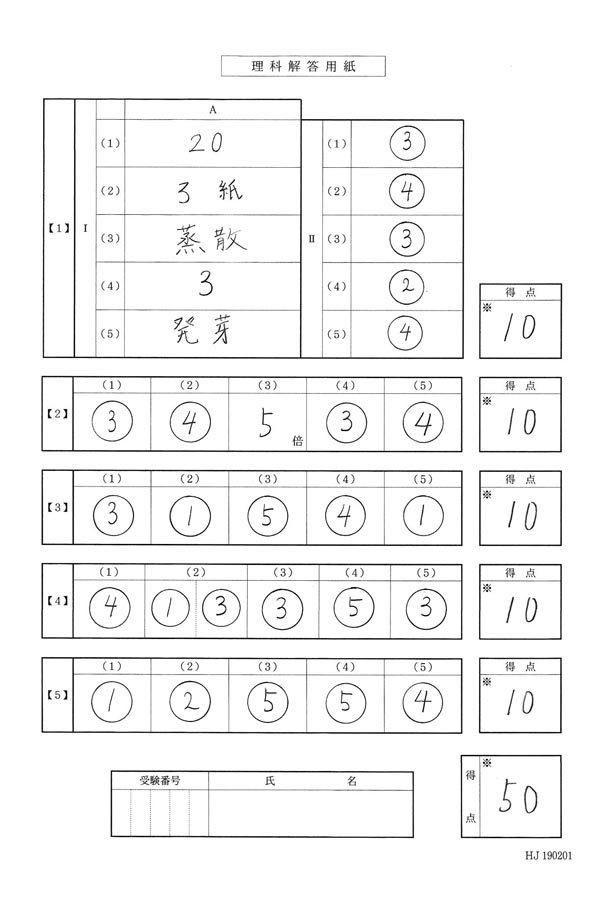 平成31年度入試過去問題 第1回(理科 解答)(1ページ目)|国学院大学久我山中学校の入試過去問