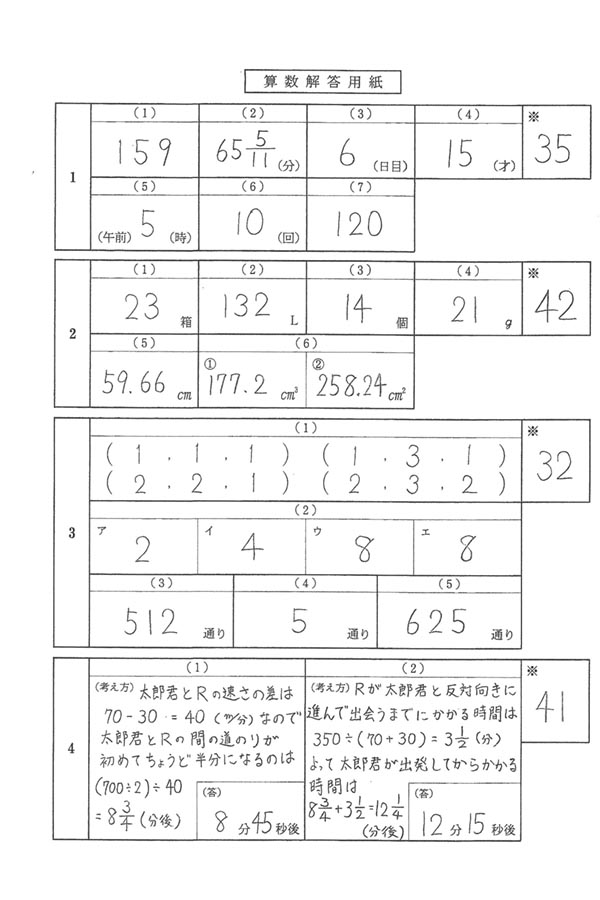 2021年度入試過去問題  ST第1回(算数 解答)(1ページ目)|国学院大学久我山中学校の入試過去問
