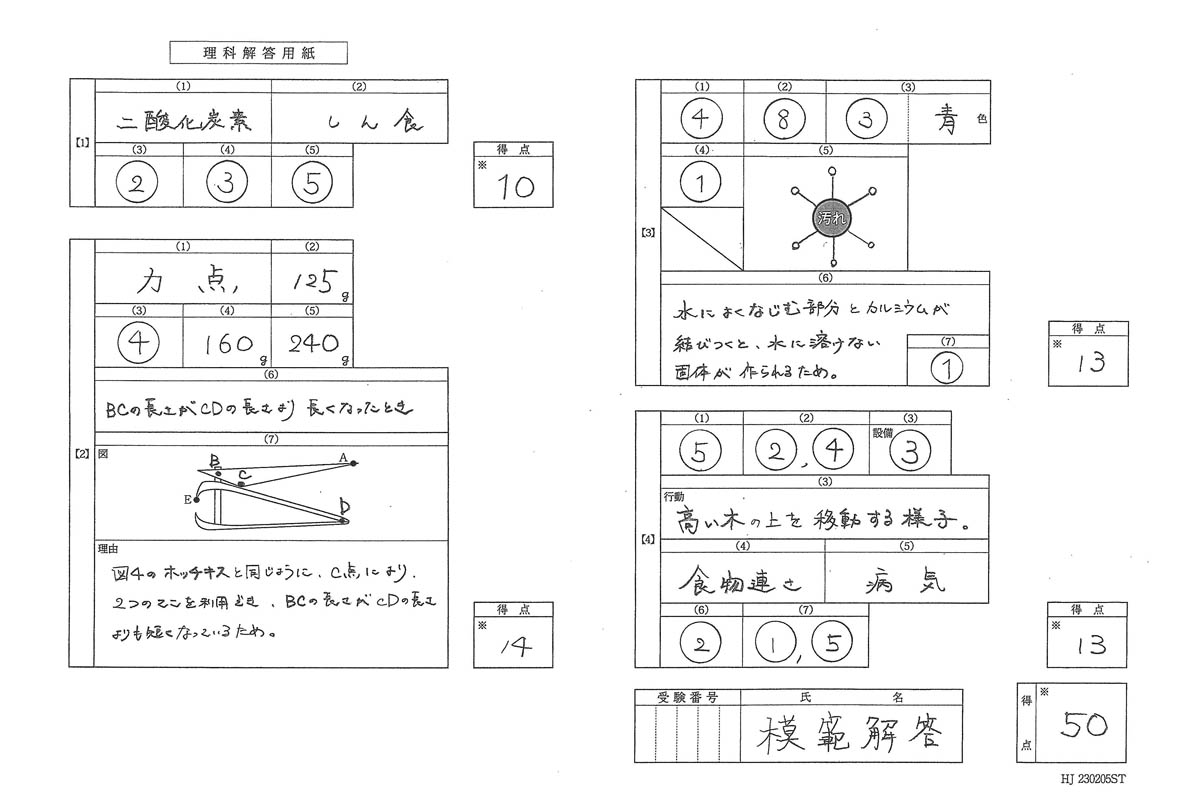 2023年度入試過去問題 ST第3回(理科 解答)(1ページ目)|国学院大学久我山中学校の入試過去問