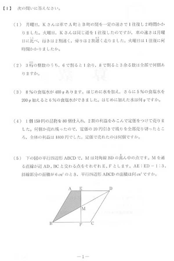 入試過去問(問題)(1ページ目)|国学院大学久我山中学校の入試過去問