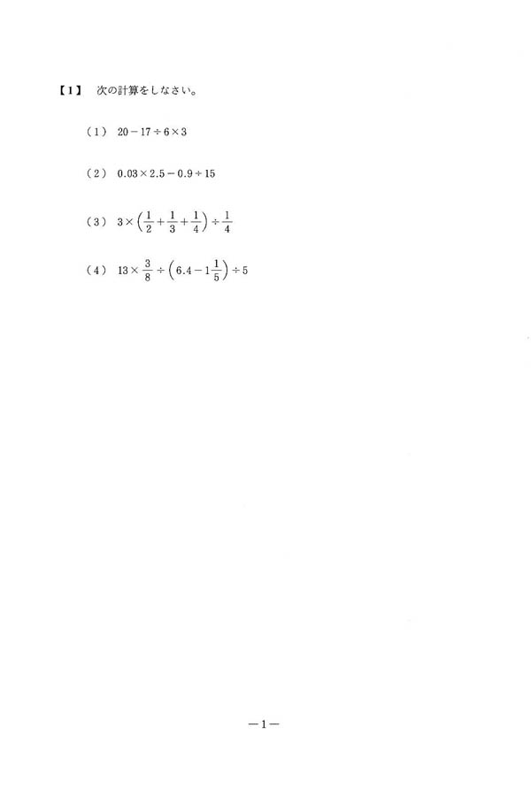 平成25年度入試過去問題 第1回(算数 問題)(1ページ目)|国学院大学久我山中学校の入試過去問